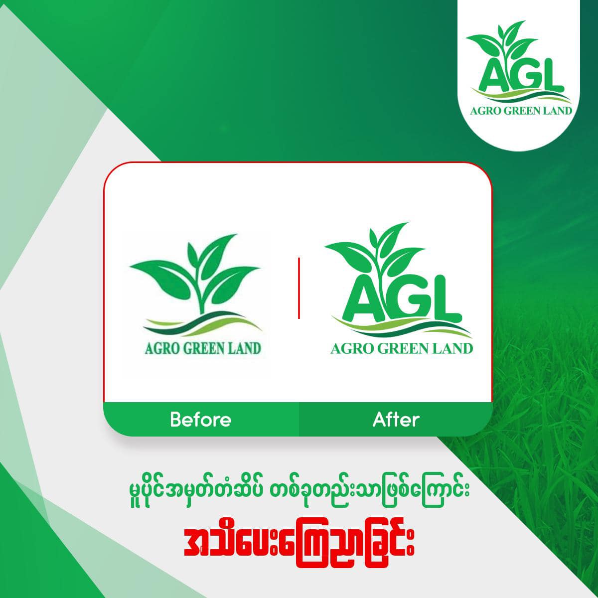 အဂရိုဂရင်းလန်းကုမ္ပဏီကို ၂၀၁၇ ခုနှစ်မှာ စတင်တည်ထောင်ခဲ့ပြီး တရားဝင်မှတ်ပုံတင်ထားသည့်သွင်းအားစုများအား ၂၀၁၈ ခုနှစ်မှစတင်၍ အရည်အသွေးပြည့်၀သောသွင်းအားစုများအဖြစ်စျေးကွက်အတွင်းသို့ စတင်ဖြန့်ဖြူးရောင်းချခဲ့ပါတယ်။ အဂရိုဂရင်းလန်းရဲ့တောင်သူဦးကြီးများအတွက်လည်း စိတ်ချယုံကြည်ရတဲ့မိတ်ဆွေကောင်းတစ်ဦးအဖြစ် အမြဲဝန်ဆောင်မှုပေးခဲ့ပါတယ်။